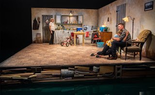 The writing is taut and confident, the drama's reveals are subtle and quietly alarming, allowing us to absorb its true depth in bits and pieces, as though we aren't capable of confronting it all at once. The set itself contributes to the unease, a dowdy country cottage set at off-angles to the audience and surrounded by an eerie green moat in an atmosphere of poison gas.