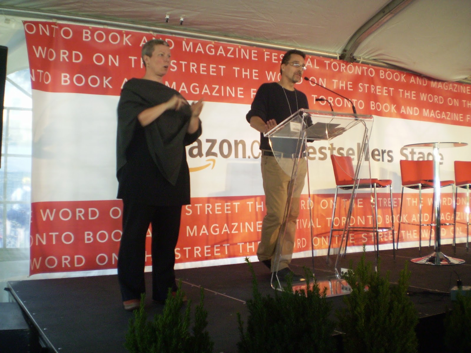 Here are a few snaps from the past weekend's Word On The Street Festival, where I read from my new book Pumpkin Eater (Dundurn Press) at the Amazon.ca Bestseller's Stage. I also had the honour of being sponsored ("friended") by Don Oravec and Jim Harper, as well as Webcom Inc. It was great to appear at the festival, but even better knowing I was a sponsored writer. If you want to show your appreciation to a particular writer next year, that's one way to do it!