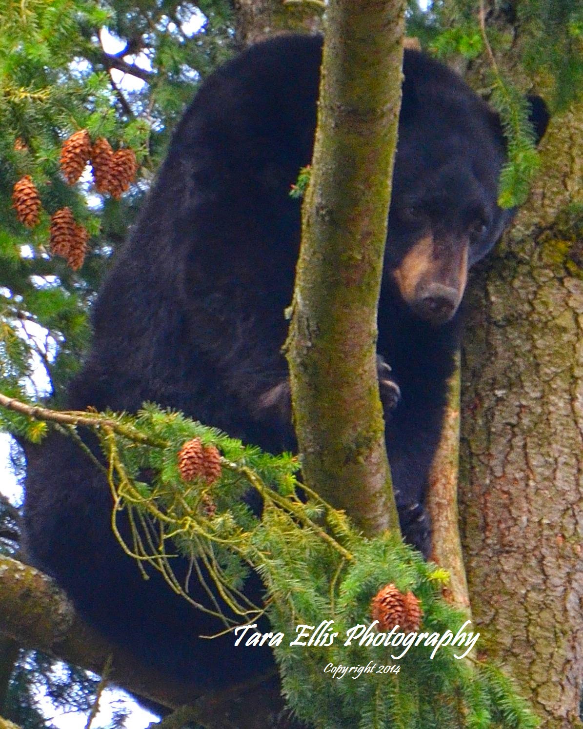 So yesterday was interesting! I read a report from our local news source, Skagit Breaking, about a bear sighting in town. No one had been able to get a picture of it to share a couple of hours later, so since I was already headed in that direction to pick my daughter up from driver's ed....I grabbed my camera. The area was cordoned off by police, but from a distance, with my telephoto lens, I was able to quickly determine that he was a BIG bear...and he had chosen one of the biggest trees in the center of town, in a residential neighborhood, right next to an elementary school!