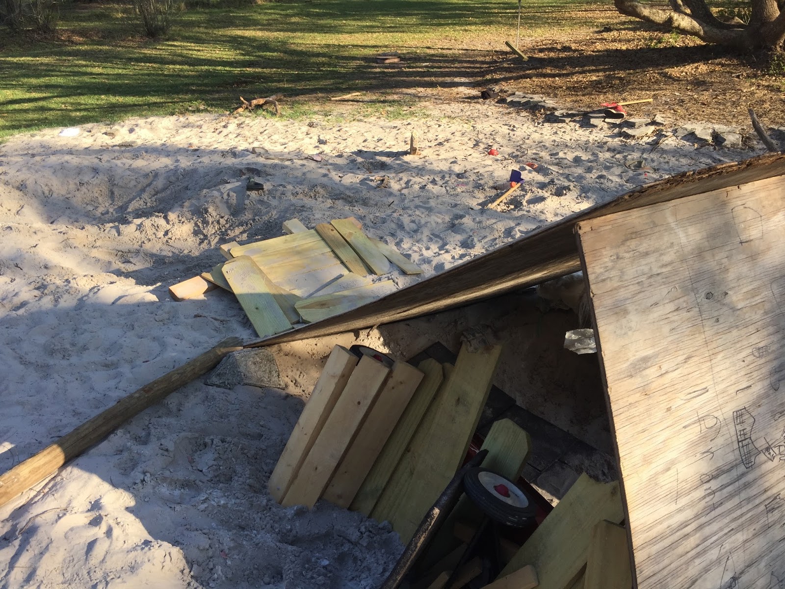 They engineered a new game. They dug a hole in the sand hill. They propped up a piece of plywood with hunks of scrap lumber. They aimed and angled the plywood at the hole. They located a bowling ball. They took turns sitting in the hole. They lugged the bowling ball to the apex of the inclined plane and let it fly at the guy sitting in the hole, legs spread wide.