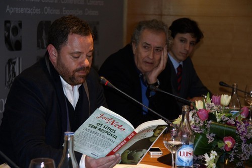 «Um excelente livro e uma bela surpresa. Um retrato do vazio e do seu rosto mais nobre: a solidão e o silêncio», disse António-Pedro Vasconcelos, durante o lançamento nacional de "Os Sítios Sem Resposta", realizado ao final da tarde de 18 de Abril. Encarregue da apresentação, o cineasta destacou o lirismo e a lucidez do romance, numa intervenção que desafiou e divertiu e enterneceu as cerca de 150 pessoas reunidas no restaurante do centro comercial El Corte Inglés, em Lisboa. «O culto da nostalgia não nos trai, porque a memória emoldura as imagens, congela o tempo, embalsama as recordações. (...) A lucidez é o refúgio tardio dos românticos», disse ainda Vasconcelos. Personalidades da política (como João Bosco Mota Amaral), do empresariado (como Joaquim Oliveira), da literatura (como Alice Vieira), do jornalismo (como João Marcelino) e do futebol (como Ricardo) participaram na sessão. (foto © Jorge Pombo)