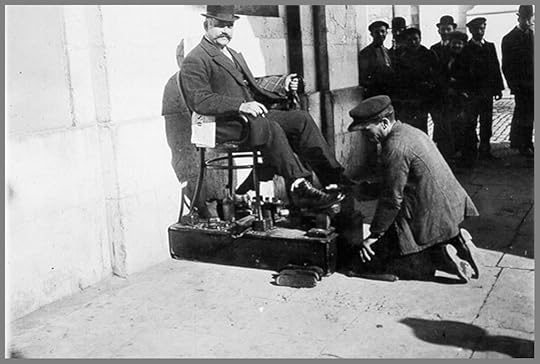 Podem ser doutores e engenheiros, mas muitas vezes são escriturários, trolhas, mesmo engraxadores. Tive um tio-avô que tinha essa qualidade e que manteve essa qualidade mesmo depois de se reformar e de, efectivamente, passar a engraxar sapatos na Praça Velha. Já fiz dele personagem num conto, embora manipulando-lhe as idiossincrasias. O facto é que andava por ali com uma caixa de madeira na mão, dando-se ares de exagerada importância – e que, quando era chamado a uma engraxadela (diz-se "engraxadela?"), não andava, mas desfilava, até finalmente agachar-se em frente ao cliente, estender um pano de camurça no chão, dispor sobre ele os seus utensílios, endireitar as costas e, então sim, começar o trabalho. Talvez não fosse bem assim. Talvez seja eu quem o recorda dessa maneira, à distância de mais de trinta anos, quase tantos quantos tenho de memória. Talvez David Machado de Sousa fosse mesmo apenas mais um daqueles pobres diabos de cuja simples existência os transeuntes se riam. Mas havia – juro que havia – homens de respeito que se punham sobre ele, com o pé esticado na direcção da sua escova, e em vez do habitual esgar de nojo, como se se preparassem para esmagar uma barata, metiam um ar quase urgente, de quem teme ficar sem o pé, o resto da manhã definitivamente consagrado à procura desesperada da aprovação daquele homem.