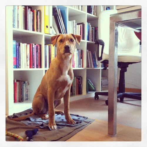 O Melville foi, enfim, esterilizado. Pensámos que chegaria a casa combalido e triste. Imaginámo-nos a fazer-lhe canjinhas, a aconchegá-lo com mantas acolchoadas, a discutir um com o outro porque hoje, ao menos hoje, não deveria ser dia de dormir na garagem. Afinal, veio igual. Trazia um penso na pélvis e, quanto ao resto, foi o caos do costume. Entrei na clínica e já lá andava a rabiar, tirando o juízo à gaiata da recepção. No carro, venceu duas vezes as barreiras do porta-bagagens e à terceira tentativa quase se enforcou no cinto de segurança. Chegou a casa, comeu tudo o que pôde, brincou com os brinquedos todos, atirou-se aos livros, aos bibelôs e ao papel higiénico. Agora está aqui debaixo da mesa, a tentar fornicar a minha perna, tentando tirar o máximo partido das hormonas que ainda lhe restam no sistema. É o bom e velho Melville, afinal. Já tinha saudades dele./Terra Chã, 20.1.14.