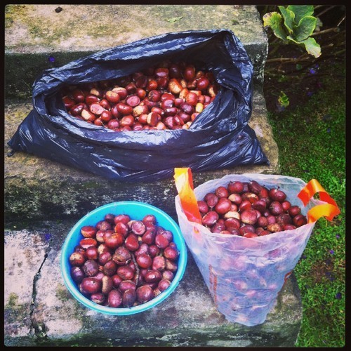 Todos os anos, por esta altura, eu os lembrava já. Agora que vivo aqui, lembro-os mais ainda. Lembro-me de nós, eu e José Guilherme, subindo a mata apoiados em bordões com os quais escrutinávamos cada recanto à procura delas. Lembro-me do meu pai, acabado de chegar do trabalho e já correndo com um alfange na mão, para roçar por debaixo das árvores antes que a noite caísse sobre elas. Lembro-me novamente de nós, eu e José Guilherme, vendendo-as no Porto Judeu, com o 127 vermelho apitando muito animado – e depois lembro-me novamente do meu pai a olhar para máquina de escrever portátil que eu acabara de comprar com a minha parte dos lucros, ainda indeciso sobre se sentir-se orgulhoso, mas em todo o caso já esperançado. O tempo das castanhas. Não creio que haja uma época do ano mais puramente açoriana, mais explosivamente terceirense, mais encantadoramente da Terra Chã. Só por isso já valia a pena deslocar-me todos os dias ao cerrado, apesar da lama e da erva e dos picos dos ouriços, para limpar sob o castanheiro situado aqui ao lado de casa, mesmo não sendo ele propriedade minha. Acontece que o semeou a minha mãe, aos três anos apenas, enterrando uma castanha no limite junto às pedras do muro. O avô dela riu-se, como tantos anos depois o meu haveria de rir-se também das minhas ingenuidades de criança. Mas havia ternura nesses sorrisos – e, inevitavelmente, eles libertavam a flor. Como poderia eu deixar que os ratos devorassem o fruto do seu ventre?