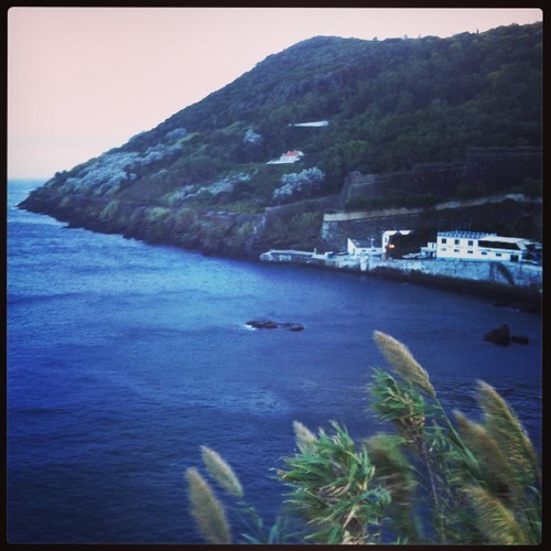 O que é certo é que, passado bem mais de um ano sobre o dia em que cheguei, continuo a sentir desejo pelos elementos que aqui se exacerbam. Pelo vento que nos fustiga enquanto passeamos pelo pontão de Angra, quase nem nos deixando andar; pela chuva que se abate sobre nós ao longo da caminhada matinal, levando os automobilistas a questionarem-se sobre quem serão aqueles dois malucos à procura de uma pneumonia; pelo sol que se abate brandamente sobre o cerrado em que estendemos as mantas aos sábados, para os piqueniques em que insistimos independentemente das circunstâncias. Continuo a sentir desejo pelos elementos que aqui se exacerbam e continuo a descobrir as suas obras, tanto quanto aquelas com que os homens tentam resistir-lhe. Ainda não há fim-de-semana de que volte sem dezenas de fotografias para descarregar e arquivar. E, sempre que, à segunda-feira de manhã, eu as descarrego e arquivo, volto a fazer-me as perguntas do costume: haverá um dia em que este encanto se transformará noutra coisa? Por exemplo: numa intimidade que talvez não seja ainda, precisamente porque é encanto? Num estar simples e automático, porque no fundo a indisponibilidade acaba por tocar a todos e é na disponibilidade que está o busílis?