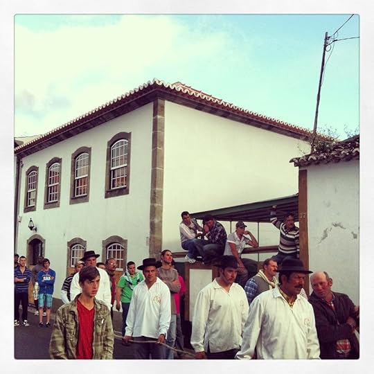 Fui levar a Catarina ao aeroporto e mergulhei na tourada da Terra Chã, percorrendo o arraial com o Nogueira (gosto de chamar-lhe uma tradição, embora seja apenas a segunda vez) e parando pelas casas a beber frescas. Quando for adulto, quero fazer aqui, neste jardim, a mesma festa que o João de Brito hoje em dia faz na dele. Melhor quinto toiro, como lhe chamam os borguistas, é difícil.