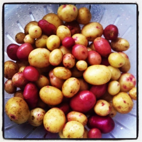 Ontem à noite comemos as primeiras batatas da horta. As mais pequenas, assadas no forno. Tratei da colheita na sexta-feira, logo ao chegar, e afinal os resultados revelaram-se menos decepcionantes do que o esperado. Entretanto provámo-las juntos, durante o jantar de aniversário com o clã todo, e foi uma pequena festa. Tudo está bem quando acaba mais ou menos.