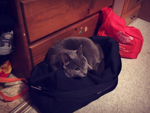 And then he finally settled on my bag. Has been sleeping there since. What a cutie~