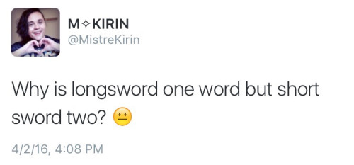 Why is longsword one word but short sword two?