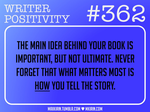 The main idea behind your book is important, but not ultimate. Never forget that what matters most is how you tell the story.