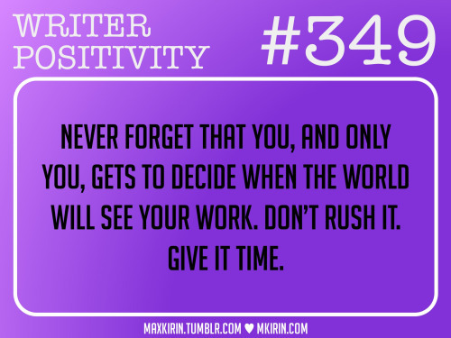 Never forget that you, and only you, gets to decide when the world will see your work. Don’t rush it. Give it time.