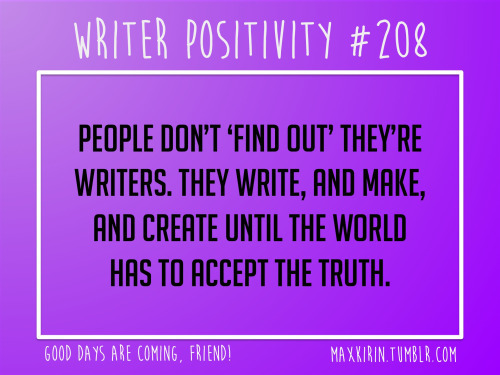People don’t ‘find out’ they’re writers. They write, and make, and create until the world has to accept the truth.