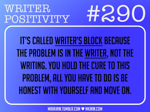It’s called writer’s block because the problem is in the writer, not the writing. You hold the cure to this problem, all you have to do is be honest with yourself and move on.