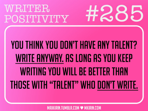 You think you don’t have any talent? Write anyway. as long as you keep writing you will be better than those with “Talent” who don’t write.