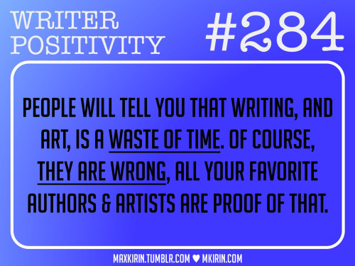 People will tell you that writing, and art, is a waste of time. Of course, they are wrong, all your favorite authors & artists are proof of that.