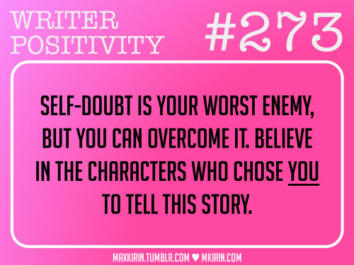 Self-doubt is your worst enemy, but you can overcome it. Believe in the characters who chose YOU to tell this story.