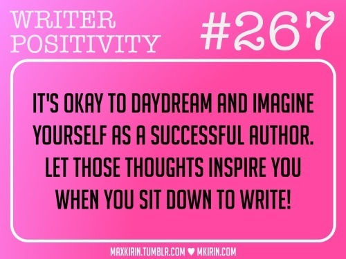 It’s okay to daydream and imagine yourself as a successful author. Let those thoughts inspire you when you sit down to write!