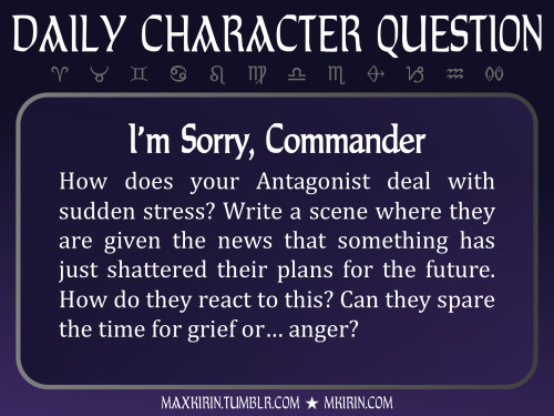 How does your Antagonist deal with sudden stress? Write a scene where they are given the news that something has just shattered their plans for the future. How do they react to this? Can they spare the time for grief or… anger?