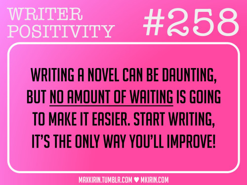Writing a novel can be daunting, but no amount of waiting is going to make it easier. Start writing, it’s the only way you’ll improve!