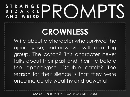 Want more writer inspiration, advice, and prompts? Follow my blog:maxkirin.tumblr.com!