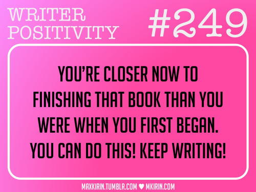 You’re closer now to finishing that book than you were when you first began. You can do this! Keep writing!