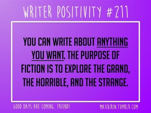 You can write about anything you want. The purpose of fiction Is to explore the grand, the horrible, and the strange.