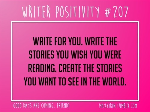 Write for YOU. Write the stories you wish you were reading. Create the stories you want to see in the world.