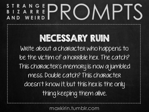 Write about a character who happens to be the victim of a horrible hex. The catch? This character’s memory is now a jumbled mess. Double catch? This character doesn’t know it, but this hex is the only thing keeping them alive.