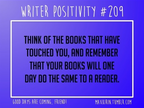 Think of the books that have touched you, and remember that your books will one day do the same to a reader.