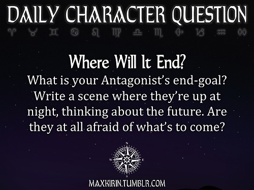 What is your Antagonist’s end-goal? Write a scene where they’re up at night, thinking about the future. Are they at all afraid of what’s to come?