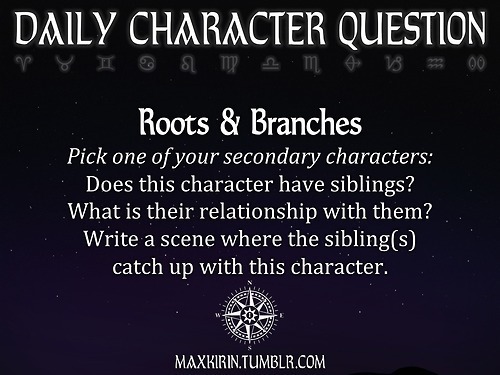 Does this character have siblings? What is their relationship with them? Write a scene where the sibling(s) catch up with this character.