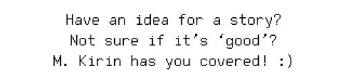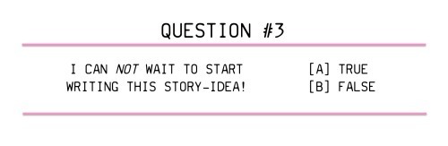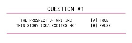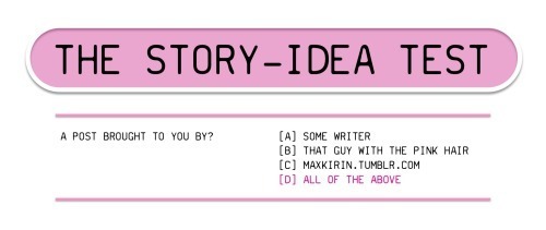 Over the last year I’ve gotten hundreds (if not thousands :0) of writers sending me their story-ideas and asking me if they’re ‘good.’ Now, instead of continuously copy-pasting the same response, or worse ignoring them, I decided to format my thoughts into a nice-and-simple test c;