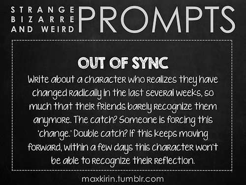 Write about a character who realizes they have changed radically in the last several weeks, so much that their friends barely recognize them anymore. The catch? Someone is forcing this ‘change.’ Double catch? If this keeps moving forward, within a few days this character won’t be able to recognize their reflection.