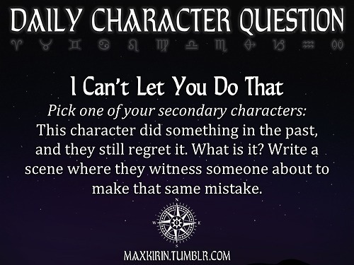 This character did something in the past, and they still regret it. What is it? Write a scene where they witness someone about to make that same mistake.
