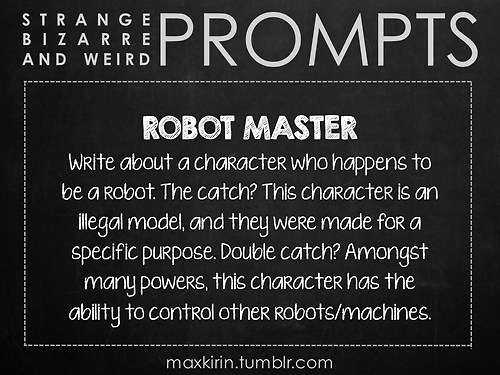 Write about a character who happens to be a robot. The catch? This character is an illegal model, and they were made for a specific purpose. Double catch? Amongst many powers, this character has the ability to control other robots/machines.