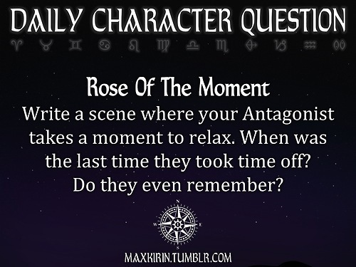 Write a scene where your Antagonist takes a moment to relax. When was the last time they took time off? Do they even remember?