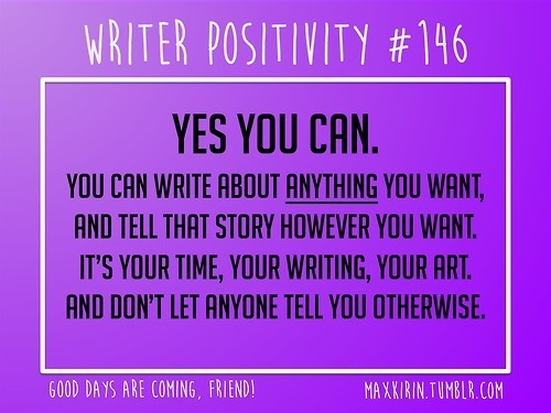 You can write about anything you want, and tell that story however you want. It’s your time, your writing, your art. And don’t let anyone tell you otherwise.