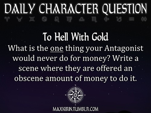 What is the one thing your Antagonist would never do for money? Write a scene where they are offered an obscene amount of money to do it.