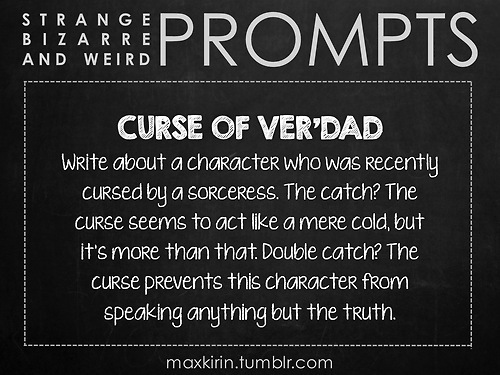 Write about a character who was recently cursed by a sorceress. The catch? The curse seems to act like a mere cold, but it’s more than that. Double catch? The curse prevents this character from speaking anything but the truth.