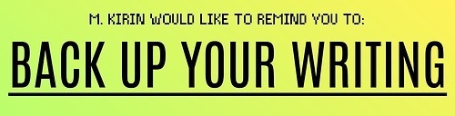 And that included a lot of my writing. It was a very sad and traumatizing experience to lose SO MANY stories I had written over the years. So, please don’t let that happen to you!