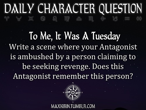 Write a scene where your Antagonist is ambushed by a person claiming to be seeking revenge. Does this Antagonist remember this person?