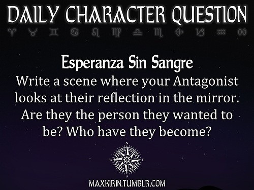 Write a scene where your Antagonist looks at their reflection in the mirror. Are they the person they wanted to be? Who have they become?