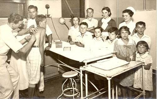 Scranton, PA: One of thirteen other dog bite victims, most of them children, receiving an inoculation of the anti-rabies serum, which is being furnished by the city health department. These thirteen victims were all bitten by dog from St.Ann Street in West Scranton.