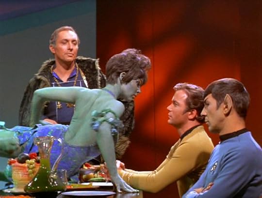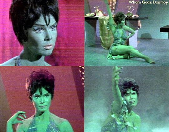 Secondly, as Marta, perhaps the most famous of the green-skinned Orion slave girls and featured on the original Star Trek series episode Whom Gods Destroy: