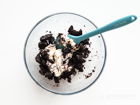 Once cooled, add mascarpone (or cream cheese) to the brownie mixture, stirring until fully combined. Place the bowl in the fridge to chill for 30 minutes. Then, use a cookie scoop or dampened hands to shape into 15 truffles, about 20 g (0.7 oz) each. Arrange the truffles on a tray and freeze for at least 30 minutes, or up to 1 hour.