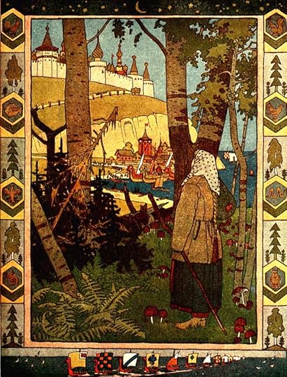 “Water of Youth, Water of Life, and Water of Death”This story is a weird one! In a nutshell, the Tsar hears that there’s a beautiful maiden “from whose hands and feet water was flowing, and whoever would drink that water would become thirty years younger.” (Did I mention it’s weird?) Two of the Tsar’s sons fail to find the maiden, scared off by warnings of being dismembered that come first from “a gray old man” and then from Baba Yaga. Beyond the name and the nickname “boneleg,” this Baba Yaga doesn’t appear with any of the usual indicators: no spinning hut on chicken legs, no huge nose, etc. The Tsar’s third son, Ivan, next tries to find the magic maiden, and he also comes upon “Baba Yaga, boneleg.” If this is the same one his brother encountered, we don’t know, but this time, there is mention of “a cabin on hen’s feet.” As were his brothers, Ivan is warned against pursuing his goal. He’s determined, though, and the remainder of the adventure involves his finding ways around the dismemberments foretold by Baba Yaga. She has a very small role, and it’s limited to cautioning the protagonist about dangers ahead. Poor Ivan doesn’t even get a meal or a night’s rest out of the deal. Nonetheless, Baba Yaga is shown to be making a bit of an effort to guide him on for his quest. At least, she gets points for not eating Ivan.