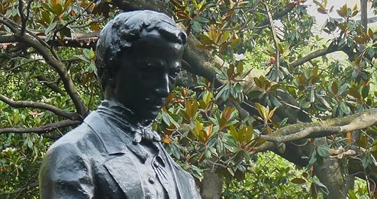 This is my close-up of Charles Rudy’s 1957 sculpture of Poe awaiting inspiration. The statue can be visited at Richmond’s Virginia State Capitol Square. What’s that? Nine theories aren’t bewildering enough for you? In that case, Open Culture has a page titled “The Mystery of Edgar Allan Poe’s Death: 19 Theories on What Caused the Poet’s Demise.” There, Josh Jones offers a handy list of 15 theories along with information to dig up the publications in which each was first proposed. He mentions that the list was pulled from the website of The Poe Museum in Richmond, Virginia, but his link is dead. All I can find at that site is a quick mention of “over 26 published theories of [Poe’s] demise” on their page titled “Poe Biography.” Struggling through a jungle of that many theories would require, by my calculations, at least three machetes, seven pith helmets, and a dozen cans of bug spray.