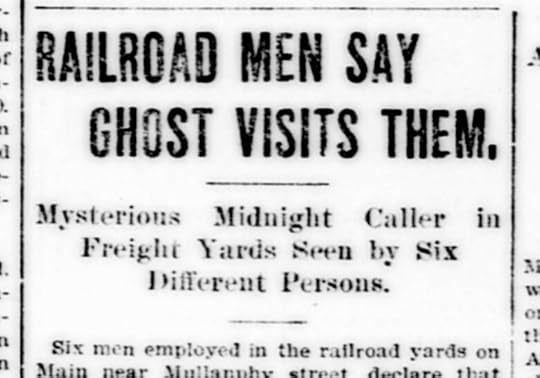 The article says that “near the hour of midnight a ghost flits about among the freight cars in the vicinity,” eluding those hoping to get a grasp on what it is. The apparently male figure darted around without making a sound, sometimes coming so close to the wheels of moving trains that one jittery worker asked to be reassigned to the day shift.