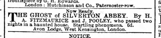 The Silverton Abbey Haunting and Late-Victorian Ghost HuntingSomething that might’ve fit nicely in The Victorian Ghost Hunter’s Casebook is a 16-page pamphlet titled The Ghost of Silverton Abbey: A True Story. It was published in 1896 and written by H.A. Fitz-Maurice and J. Pooley. Unfortunately, it’s extremely rare, and a guy who pounces on a free trial to Newspapers.com ain’t going to buy a ticket from the North American Great Plains to Britain to see it. (Of course, there are other very nice things one might visit in Britain, but that’s a discussion for another time.)