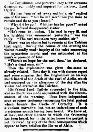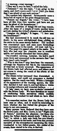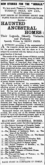 In January of 1892, British newspapers from Angus, Scotland, down to Hampshire, England, announced they would be running a 13-part series. It was titled “Haunted Ancestral Homes: Their Legends, Ghostly Visitants, and Portents” and written by Henry Frith. Here’s what that announcement looked like in the January 19 issue of the Brechin Herald: